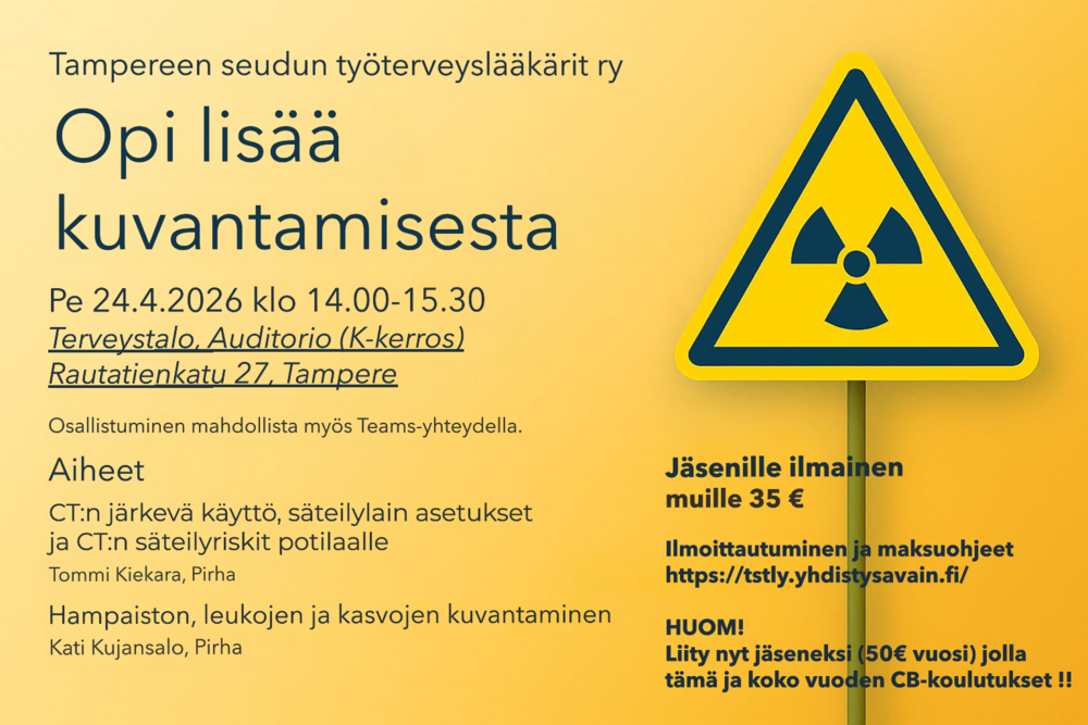 Tampereen seudun työterveyslääkärit Ry tarjoaa koulutusta jäsenilleen ja muille asiasta kiinnostuneille 14.2.2025 Terveystalo Auditorio Rautatienkatu 27 K-kerros Klo 14-15.30 Milloin tarvitaan…