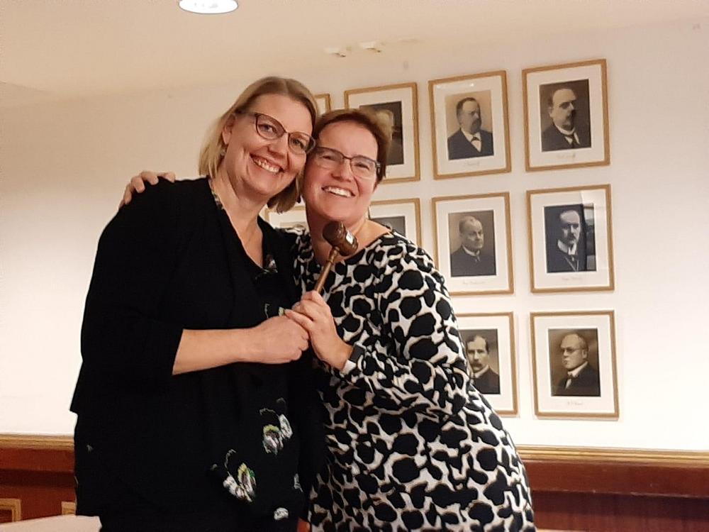 Puheenjohtajan nuija vaihdettiin näin lämpimissä merkeissä. Kiitos Aulikki Juntunen tehokkaasta pj kaudestasi ja onnea Minna Toom alkaneelle kaudelle!